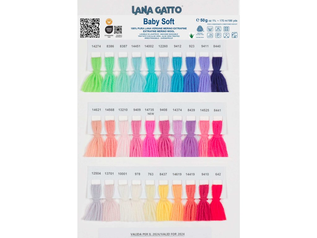 Dětská vlna Baby Soft italského výrobce značky Lana Gatto. Příze je složena z 100 % merino vlny extrafine ošetřena aloe vera.
