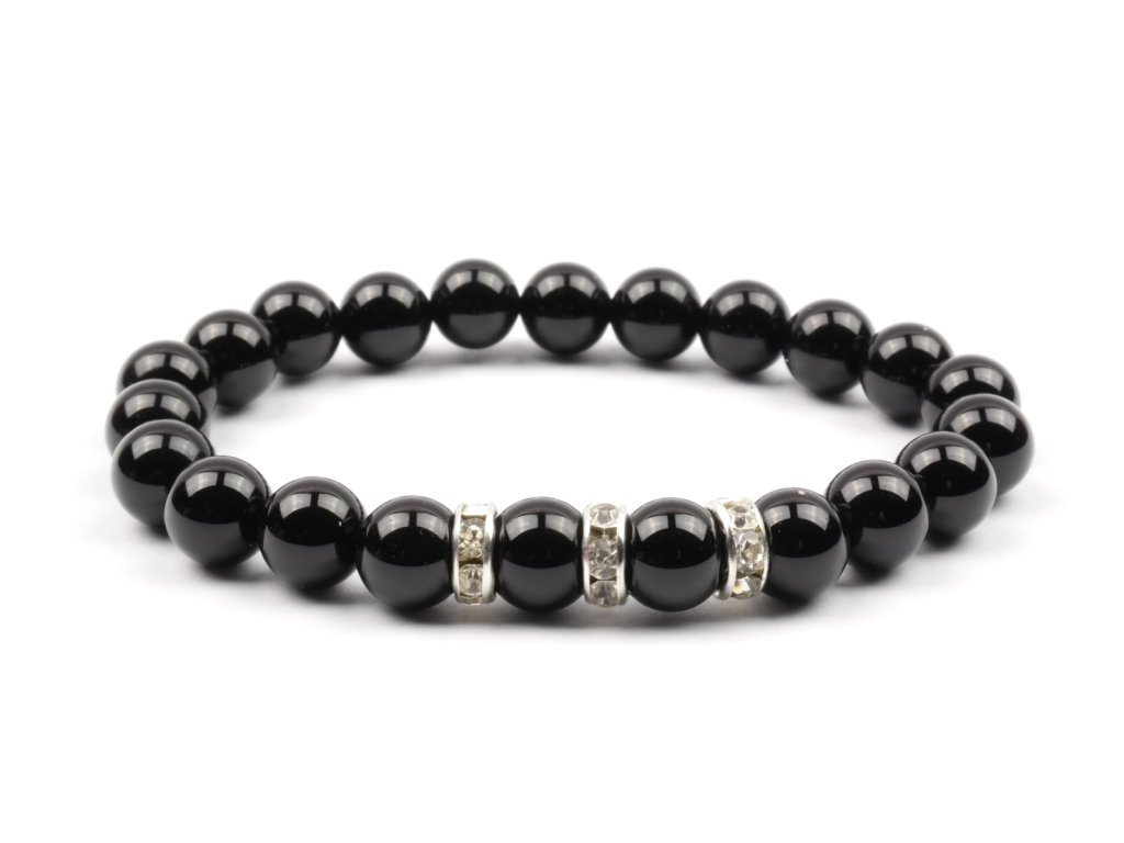 Náramek je vyroben z korálků onyxu o průměru 8mm, doplněno rondelkami.